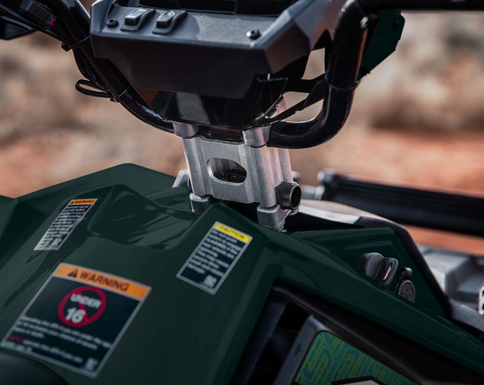 2 Drive Mode: Performance/ Standard, 12-volt power plug, pre-wired for hand and thumb warmers, independent battery charging port, Front bumper, painted plastics, painted springs, fender flares
